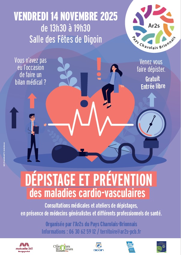 Notre association organisera, le vendredi 14 novembre, une action sur le dépistage et la prévention des maladies cardio-vasculaires. De nombreux professionnels de santé seront présents lors de cette action : médecin traitant, infirmière asalée, professeur APA, diététicienne... Nous remercions la Mutuelle 341, ELM Santé, la Ville de Digoin, le Lions Club Charolais Bourbonnais et [...]